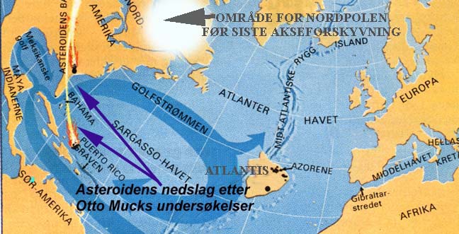 Otto Muck var vel den første som forsto å sette disse funn i en teori om Atlantis’ ødeleggelse, ved å kople disse spor etter enorme meteoritt-nedslag - med en total katastrofe i Atlanterhavet. Også dype skarpe hull i sjøbunnen ved Puerto Rico, viste innslag av to mektige deler av himmel-legemet eller planetoiden. Etter Mucks beregning måtte hver av disse delene ha hatt et tverrmål av minst 10 kilometer.