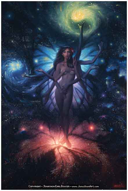 Så hverken stoff eller energi er annet enn fenomener, som nødvendigvis skal til i et betinget univers. Alt blir frembragt og forandret i vekselvirkningen mellom opprinnelig rom og deformert rom, og den elektriske ild - Viljen - i nesten talløse grader og kombinasjoner. I det levende Univers er det fremkommet en mengde hierarkier, ordener og grupper av vesener - kjente og ukjente for oss. Hver med sine funksjoner i den store sammenheng. Man har fra gammel tid forskjellig utformede modeller til å gi en ide om de styrende krefter eller arketyper, som f.eks. Kabbala`ens Sefiroh -livstre. Faktum er at det strekker seg en kjede av vesener fra de største til de mikroskopiske på utviklingsstigen. I alt levende er det en streben etter høyere bevissthet, mer opplevelse og identifisering. Alle former er uttrykksmåter for bevisstheter, som virker igjennom dem i avmålte perioder for å oppfylle hensikter. Selv om det alltid er en som er større - toppens topp blir aldri nådd - må det sies at det er En Høyeste Ånd som gjennomtrenger alt. Men det finnes f. eks. skaperguder på mange, ja alle trinn. Mindre guder og deres manifestasjoner utgjør sentere eller celler i større guders skapelser: "Vet dere ikke at dere alle er guder?" Selv små naturånder som hjelper med å bygge små planter, er guder. Især for plantene.