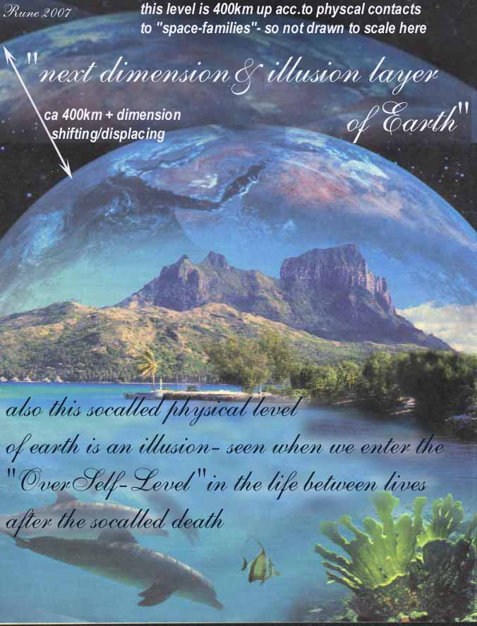 Vi kan reise i alle dimensjoner under vår egen, men ingen som ligger på et høyere nivå. Vibrasjonsnivået på de høyere "veiene" ville skade oss. Forenklet kan vi si at hele universet eksisterer i parallelle dimensjoner, og i disse dimensjonene finnes det utallige plan, og atter dimensjoner, i en uendelighet. På alle plan og i alle dimensjoner yrer det av liv i alle former. Romskipene reiser altså ikke i tid (med lysets hastighet), men i dimensjoner. De eteriske skipene, og lysskipene reiser med tankekraften, som er umiddelbar. Jordens overgang til den fjerde dimensjonen vil bli dramatisk, hvor dramatisk , vil avhenge av menneskenes bevissthetsnivå.
