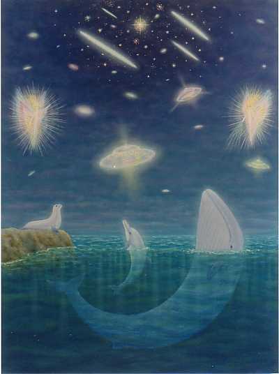 s.68 Om man skal bestå på bestemte planetariske foretak og leve lenge her, så må dette svare til bestemte svingerater i ens eget system av molekylær sammensetning. Besøkende er sagt å bare bli en stund, og skapes omgåelse for en kort tid, og blir i Jordisk atmosfære for å vende tilbake en dagsreise unna. Det må større klargjøring til for å bosette seg på andre planetariske foretak. Sist i boken på side 103 kanaliseres fra et vesen ved navn OVARO, og det berøres jordforvandlinger. .......Nå må Ovaro dessverre stadfeste at mange vil bli berørt av naturkatastrofer som vil komme. Man maskerer seg ofte for å slå slike sanseinntrykk vekk. Bestemmelser er stått opp, og kan ikke gjøres om. Kyststriper i mange land er i fare. Men nå må dere ikke slå land i beredskap! Bestå bare i liv og kjærlighet, og vit at dere må åpne deres indre, derved vil avgjørelser om hvor dere befinner dere smelte i dere. Svære oppgåelser av land må frem, men det betyr at andre må bort. Kjedekatastrofer - ja. Noen begivenheter kan forandres om menneskeheten lærer å kjennegi seg i kjærlighet til planeten.