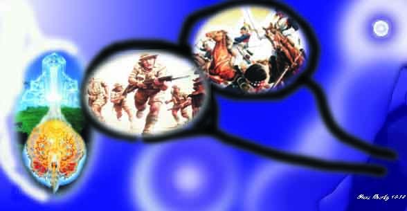 Dette vil da til å begynne med bevirke at de uferdige bevisthetskrefter blusser opp. Altså hat, gammelt fiendeskap, intoleranse og vold. Dette skjer fordi disse dyriske bevisthetskrefter skal ut av bevisstheten, og derfor ser vi nå at det krigerske eller intolerante tilsynelatende vokser over hele Jorden,- både individuelt og kollektivt. Det blir å sammenligne med rent vann som skyller ut blekkrester i et blekkhus. I begynnelsen kommer det "mye søl", men etterhvert kommer det helt rent vann ut.