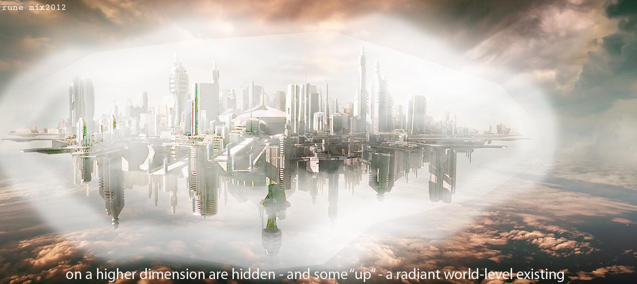 A luminous white wall easily as high as the tallest sky­scrapers on Earth surrounds the city. In the very center stands the majestic Mountain of Light, powerhouse of this plane. Out of the peak of the Mountain of Light stream thousands of colored lights, and each of these is made of smaller lights. Each light is alive.