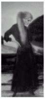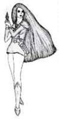 Die Frau (ISAIS) war groß und sehr schlank und trug ein langes, weites Kleid mit langen Ärmeln. Es war violett und hatte schwarze und silberne Verzierungen sowie einen breiten schwarz-silbernen Gürtel. In den Haaren hatte sie einen silbernen Haarreifen, sonst waren sie offen. Ihre Haare waren dunkelbraun, fast schwarz, sie glänzten so, daß es wie Leuchten aussah. Sie gingen reichlich bis zur Hüfte und sahen schwer aus, fast glatt. Sie hatte dunkle Augen, man konnte nicht genau die Farbe erkennen.