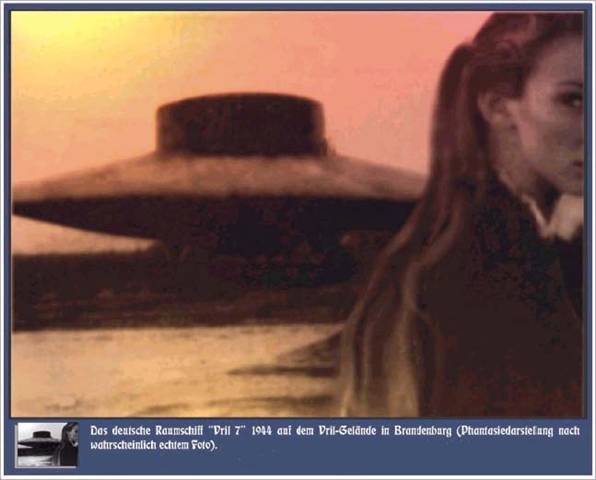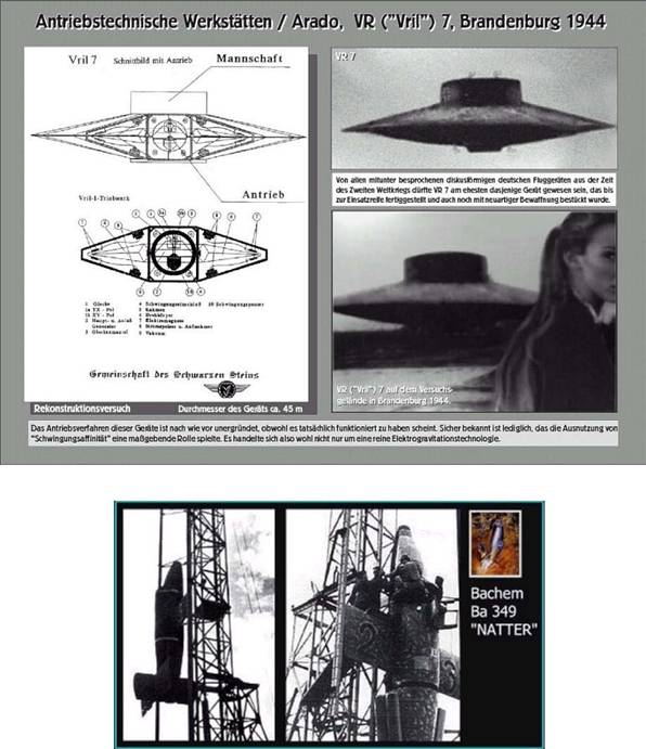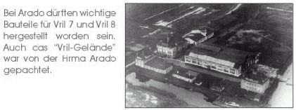 Als Gegenleistung für den günstigen Pachtvertrag, soll die Firma Arado die Pläne der „UFO“ -Konstruktion HAUNEBURG erhalten haben, da die „Vril“ - Firma an einem neuen, stärkeren Triebwerk arbeitete, das mehr Platz benötigte und eine andere Zellenform verlangte (VR/ Vril 7).