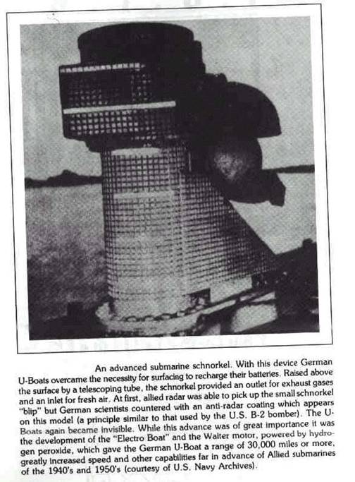 (Argentinien) und übergeben dort ihre völlig leergeräumten Boote, darunter jenes U-977, das das letzte Mal in Kiel 4 Monate zuvor gesehen worden war. Die Besatzungen werden von hohen US-Beamten verhört und nach Amerika in Kriegsgefangenschaft überführt. Die Amerikaner erhalten wahrscheinlich weitere Hinweise auf die Position des Stützpunktes. Bis heute sind über 100 U-Boote vermisst, die gegen Kriegsende mit dem sog. „Walterschnorchel“ einem Hochleistungsschnorchel für Unterseefahrten ausgerüstet wurden. Damit war es den U-Booten technisch möglich praktisch die gesamte Strecke zu tauchen und unerkannt zu bleiben.